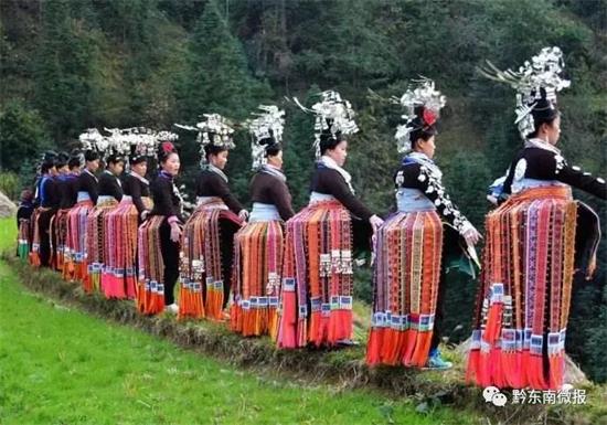 麻鳥的蘆笙場上,蘆笙曲陣陣傳來。婦女們隨著優(yōu)美的蘆笙曲翩翩起舞,頭上發(fā)髻高聳,仿錦雞頭冠的銀頭飾一步一搖,百褶裙上的彩帶仿佛絢麗的錦雞羽毛,恰如一只只美麗而高貴的錦雞在舞動。