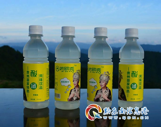 這家命名為貴州酸啦啦酸湯科技有限公司的酸湯飲料廠位于丹寨縣金鐘開發區內,交通便利。據了解,在該公司掛牌之前,公司的負責人與凱里學院聯手展開技術攻關,歷時三年研發出了國內第一款酸湯飲料,使用名稱為“米歐秀”(苗族米酸湯的意思)。目前,飲料已經上市,它保持了黔東南苗家米酸湯的原味,又有所提煉和提升,酸中帶甜,酸甜結合,口感較好,具有開胃、通腸胃、解酒等功效。