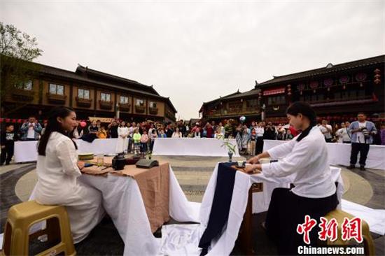 10月4日,在丹寨縣萬達小鎮“相遇貴州茶香”茶藝比賽上,來自黔東南州茶藝文化協會和當地的茶藝師,以茶藝比賽、茶知識問答、現場品茗等方式樂享假日,活動現場吸引了不少游客駐足觀看、參與其中。