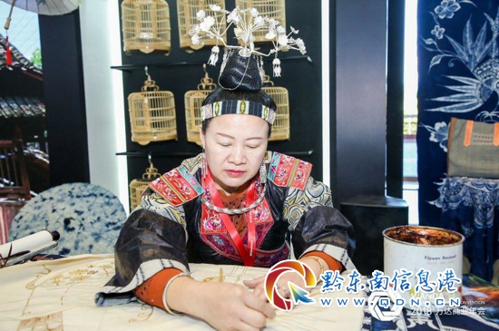 在本次商業年會中,丹寨縣組織了20多名演員和非遺文化傳承人進行舞蹈、器樂、服飾、技藝等項目的展示,其中《苗族錦雞舞》、《苗族蠟染技藝》、《石橋古法造紙技藝》等國家級非物質文化遺產項目名錄都亮相了本次年會,讓現場觀眾大為驚嘆。