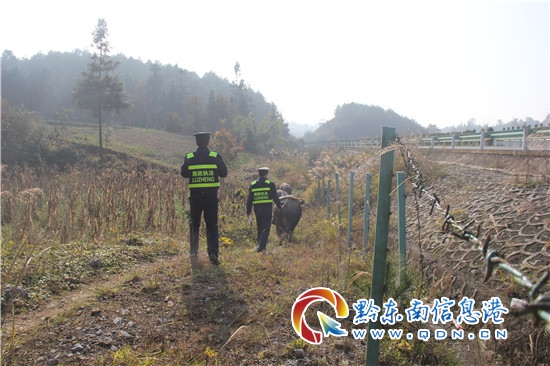 經了解,老人是魚洞村村民,因看到高速公路旁的野草茂盛,便將牛趕到此處放養。路政員隨即對老人進行了相關的法律法規宣傳,告知其在高速公路附近放養牲畜的危險性,并給老人發放了一些宣傳資料。老人聽了路政員的講解后說道:“我沒想到會有這么嚴重的后果,還好你們跟我說了,要不然我可就要犯大錯誤了。”路政員幫助老人將牛趕到安全地帶放養,并找到了鐵絲網漏洞的地方,聯系了高速公路經營單位盡快對其進行恢復,同時督促其對沿線高速公路用地范圍內的雜草進行全面清理,防止此類事件再次發生。