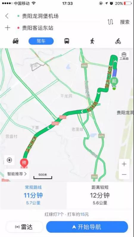 ①打車:從機場出來,任一國內到達出口便可看到出租車在外等候(還可看機場指示牌或詢問機場工作人員)。打車前往貴陽客運東站,距離機場五公里左右,用時10分鐘。