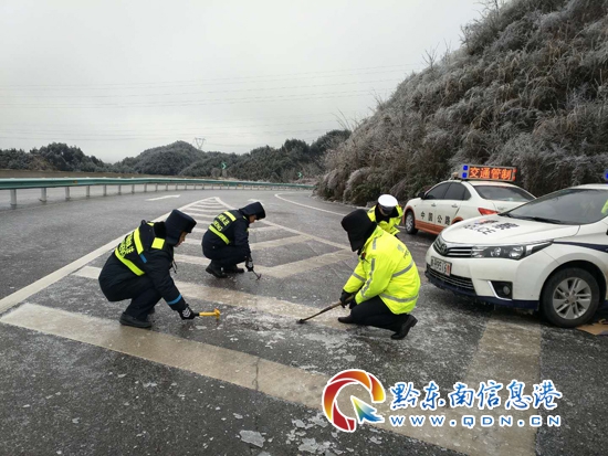 在此,高速路政提醒廣大司乘人員,凝凍極端天氣期間,道路極易結冰,對行車存在重大的安全隱患,在高速公路上行駛,請注意保持車距車速,遇到路面結冰打滑的情況下保持在低速檔行駛,冷靜不要猛踩剎車,確保車輛平穩停靠;同時請廣大司乘人員積極配合高速公路管理部門的交通勸返,以確保自己的生命財產安全。(帥幸松 岑光翔 圖/文)
