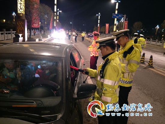 本網訊 春節將至,隨著外出務工人員返鄉,人車流量增大,走親訪友、宴席宴請活動增多,酒后駕駛等嚴重交通違法行為給人民群眾的安全出行帶來了巨大威脅,為有效預防重特大交通事故的發生,近期黃平交警大隊與轄區中隊一起在全縣各鄉鎮開展嚴打酒后駕駛違法行為專項整治行動,取得良好效果。