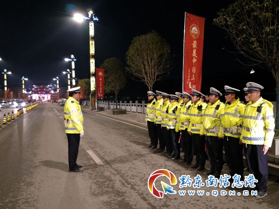 圖為黃平交警在舊州古鎮青云門前開展行動