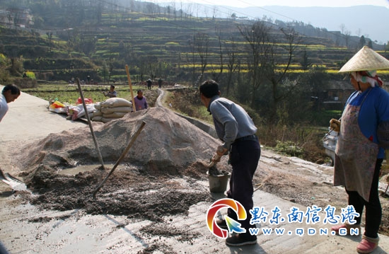 黃平縣農(nóng)戶運(yùn)用政府支持的水泥砂子硬化田埂發(fā)展稻田養(yǎng)魚(yú)