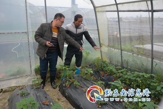 白羽鎮(zhèn)長了解貧困戶草莓種植情況