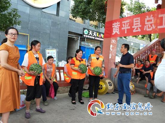 此次活動共發(fā)放礦泉水6箱、西瓜1800余斤等消暑飲品,給高溫下工作在一線的環(huán)衛(wèi)工人送去烈日下的清涼,深受環(huán)衛(wèi)工人的歡迎。(黃平縣城市管理行政綜合執(zhí)法局)