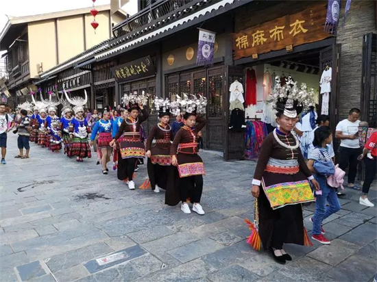 一位來自貴州當地的游客就表示,跟著巡游隊伍走一圈,確實發現了很多新樂趣。“以前都是零散觀看苗族的歌舞表演,在萬達小鎮就能看全,還能加入隊伍一起玩,特別過癮。”