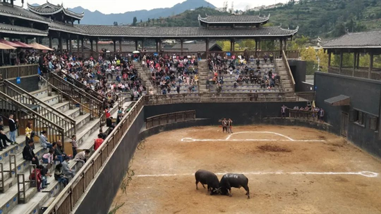 03 斗牛爭(zhēng)霸,莊嚴(yán)熱血,有一種古老的活動(dòng),既莊嚴(yán)又熱血,更蘊(yùn)藏著苗族文化的千年傳承,那就是黔東南地區(qū)特有的苗族斗牛活動(dòng)!十一假期,丹寨萬(wàn)達(dá)小鎮(zhèn)舉辦首屆牛霸天下斗牛爭(zhēng)霸賽,小鎮(zhèn)斗牛場(chǎng)邀你見(jiàn)證原始粗狂的激情對(duì)決!