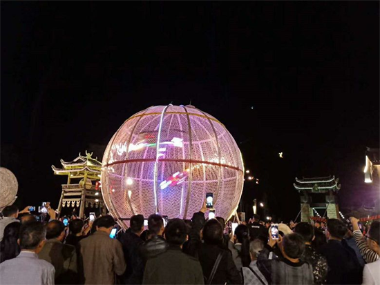 碩大的圓球剛擺在小鎮上,就吸引了大批人群圍觀,到了夜晚,發光的圓球顏值更高,飛車在圓球里上演精彩的雜技,游客們大開眼界,不停地拍照。
