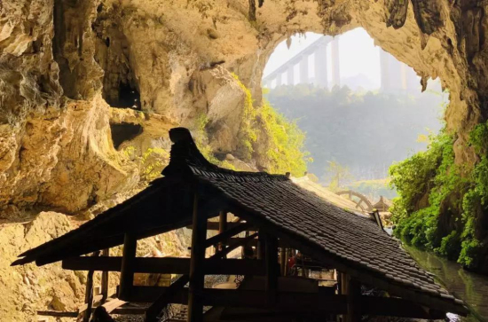 丹寨萬達小鎮的每一項非遺體驗都能在周邊村鎮找到出處,尋根溯源又是另一種滋味。古法造紙是距丹寨縣城40分鐘車程的石橋鎮的文化結晶,其工藝距今已有1400年的歷史。1500米深的洞口設有古法造紙工坊,穿洞幽深,石筍、石花恣意生長,千余年來,代代石橋人都守在這光與暗之間辛勤勞作。工匠告訴我們,做紙漿的水就來自洞中,水質為弱堿性,未經污染,對紙的質量起著至關重要的作用。
