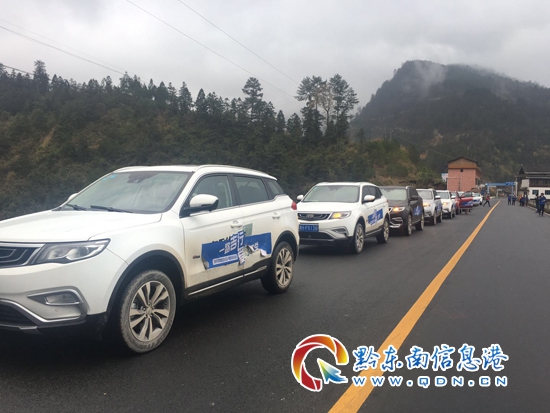 行駛約3個半小時,約140多公里的路程,大家一同向著目的地劍河縣南寨鎮九社小學進發。吉利汽車凱里圣浩4S店工作人員以及8名吉利車主一共14輛車向大山深處出發,為山區孩子送去了溫暖和關愛。