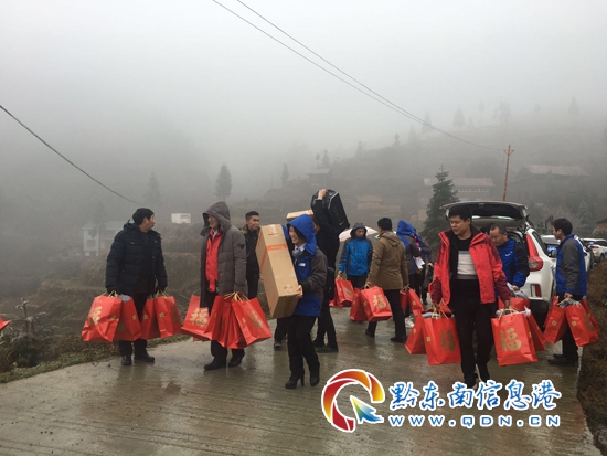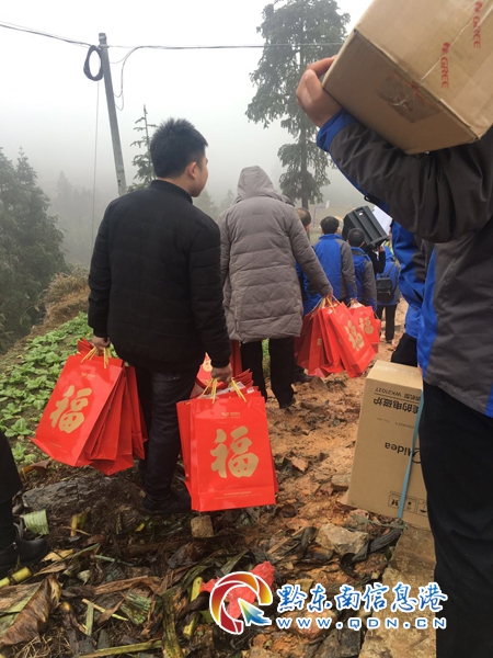 一到目的地大家就忙起來了,張羅著把帶來的慰問品帶去給山區的孩子