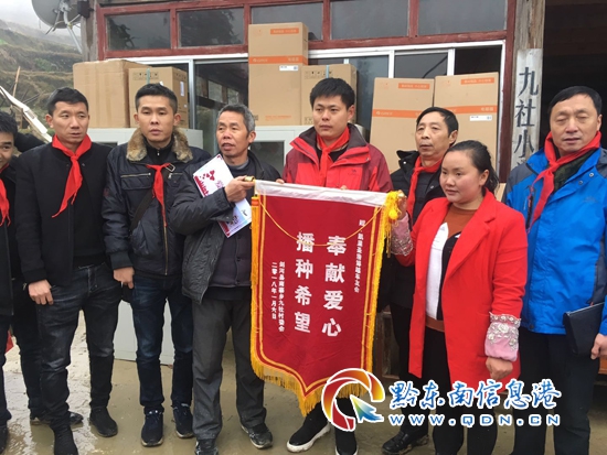 吉利汽車凱里圣浩4S店為山區小學送去的電視機、文件柜、棉衣、文具用品、籃球等