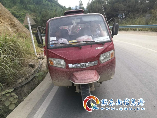 執(zhí)勤民警立即開車上前示意三輪車靠邊停車,待三輪車停穩(wěn)后,對車輛搭載人員進行清點。經(jīng)核實,民警發(fā)現(xiàn)這輛車輛號牌為貴HGM171的三輪摩托車核載人數(shù)為1人,實載9人,超載8人,并且超載的8人均為學(xué)生。針對三輪車駕駛員田某嚴重超員的交通違法行為,執(zhí)勤民警當場對其進行了嚴肅的批評教育,根據(jù)《中華人民共和國道路交通安全法》有關(guān)規(guī)定,民警依法將駕駛?cè)颂锬车能囕v進行暫扣并處以罰款。同時,對搭乘該輛三輪摩托車的8名小學(xué)生,民警也向其詳細講解了貨車、三輪車非法載人的危害,要求該8名學(xué)生要加強自身安全意識,自覺抵制各類交通違法行為。