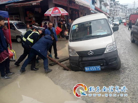 本網(wǎng)訊 2018年10月23日,在貴州省劍河縣柳川鎮(zhèn),一輛號(hào)牌為貴HX5575的面包車駕駛員因操作不當(dāng),車輛右前輪不慎落入路邊一深坑,導(dǎo)致面包車被困。