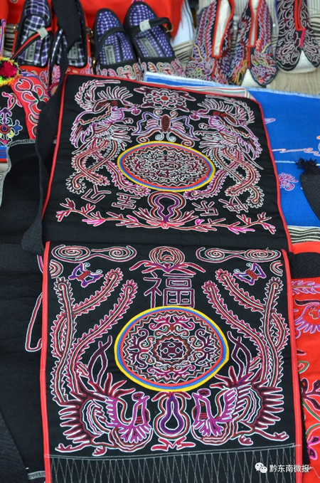 “這是我們侗家的小兒背帶,最能反映繡娘技藝的繡品。”說著,陳顯月拿出了一件背帶繡品,向記者介紹著侗族刺繡的圖騰意義,“背帶上的核心圖案是這兩個圓盤,我們叫月亮盤,里面的圖案有龍有鳳,還有蝴蝶、花鳥、魚、葫蘆,代表著自由快樂、吉祥如意,用這樣的背帶背小孩,寓意著小孩能夠健康快樂地成長。”目前,這樣一件純手工刺繡的背帶市場均價已經(jīng)高達(dá)7000元。