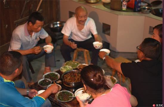 2018年10月15日,錦屏縣鐘靈鄉高寨村,一戶四代同堂的家庭成員從四面八方趕來和家中長者共進午餐過重陽。連日來,錦屏縣各鄉鎮(社區)舉行“九九重陽節濃濃祖孫情”活動,倡導以家庭為主要活動形式,開展為家中的老人洗腳、洗臉、洗衣、盛飯、陪聊等孝老敬老活動,迎接重陽節的到來。