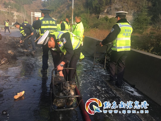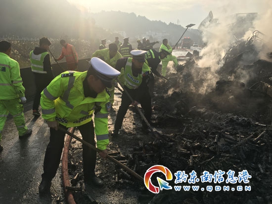 當(dāng)路面上的污物全部被清理干凈,當(dāng)車身殘骸全部被吊離現(xiàn)場,當(dāng)交通秩序得以恢復(fù)正常時,天早已經(jīng)黑了。顧不上吃飯和休息,黔東南州高速支隊高速一大隊的民警們又開始了日常的夜間巡邏任務(wù)。(向堯)