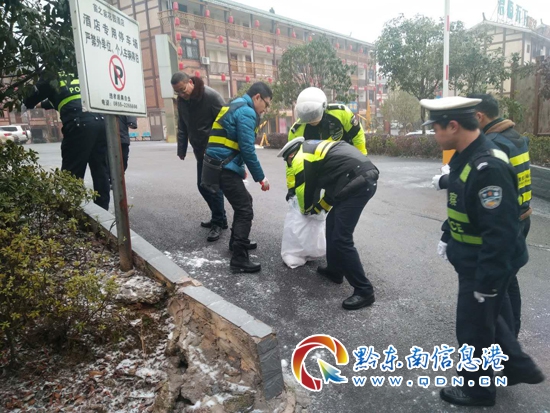 1月27日上午,大十字街道應急巡邏隊在開展凝凍道路交通隱患排查中獲悉,一輛乘坐有28名成都籍游客的旅游大巴車被困苗侗風情園苗之家花園酒店。經請示街道主要領導后,立即啟動了低溫凝凍天氣災害應急處置預案,并聯系到一批除冰鹽,與交警部門聯合展開了一場破冰保暢保安全的抗凝攻堅戰。由于苗之家花園酒店海拔高,沿途道路結冰嚴重,人行困難,應急隊伍只能徒手拉動鹽袋,并快速向酒店沿線撒鹽,為爭取時間,在撒鹽的同時,兼用鐵鏟除冰,與此同時,交警也加大了對該路段路面安全的排查和交通的疏導。時間一分一秒過去,冰雪逐漸融化,在確定安全并符合通行條件的情況下,交警引導、指揮旅游大巴緩慢駛出了風情園,28名被困游客緊鎖的愁眉漸漸舒展,臉上露出笑容,向救援人員連聲道謝。
