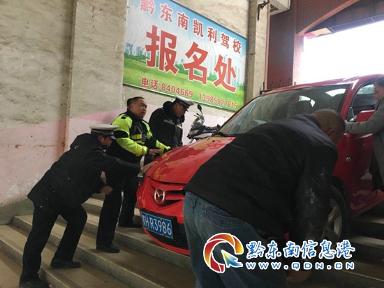 本網訊 (楊曉涓 陳世波 記者 田應龍) 2月4日下午五點半左右,在西門街臨福小區門口,一輛紅色的小轎車卡在了樓梯之間動彈不得,引來不少市民圍觀,在交警和熱心市民的齊心合力下才將小車“解救”了出來。
