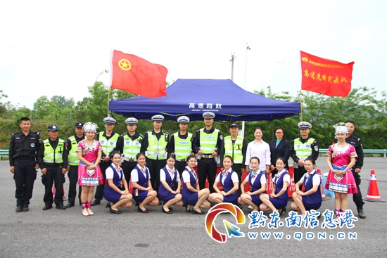 在興仁服務區“五一”安全宣傳活動現場,貴州高速先鋒宣傳人員身著黔東南民族特色服裝和整齊的高速營運藍色制服,積極為過往的司乘人員發送高速公路安全宣傳單以及送上冰冰的涼水,為增添“五一”節日氣氛,凱里營運管理中心凱羊片區還特別精心編排了以安全出行為題材的快板節目,通過節目的表演,從而讓更多的司乘人員可以將安全第一銘記于心。宣傳人員熱情的文明服務和精彩的節目表演,吸引了眾多的司乘人員為貴州高速先鋒們拍照點贊,并積極主動參與到“五一”安全宣傳活動其中,司乘人員紛紛上前簽名留念,以表人人遵守安全的決心。