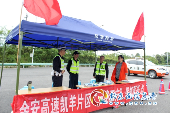 本網訊 為做好“五一”節假日期間安全宣傳工作,嚴格貫徹落實上級各項安全生產文件精神和提高節假日期間廣大司乘人員的安全防范意識。4月28日29日,貴州高速集團凱里營運管理中心先后在滬昆高速三棵樹服務區和余安高速興仁服務區,開展以“平安高速·五一出行”為主題的安全宣傳活動。凱里營運管理中心黨委書記、副主任鄧婷藍、副主任譚棟,機關相關科室負責人及滬昆片區、凱羊片區收費站、應急隊、橋隧站相關人員參加。