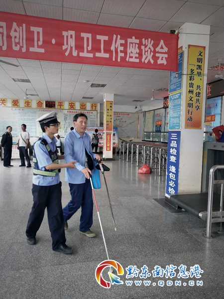這名老人今年75歲,是一名盲人,家住凱里市凱棠鄉,需要買票坐車回凱棠�?紤]到老人眼睛看不見,潘松平馬上攙扶老人買票進站乘車,將老人送到車上安排他坐好,并囑咐駕駛員一路上照顧好老人。潘松平做完這一切后才安心的返回執勤崗點,繼續投入到交通疏導工作中。