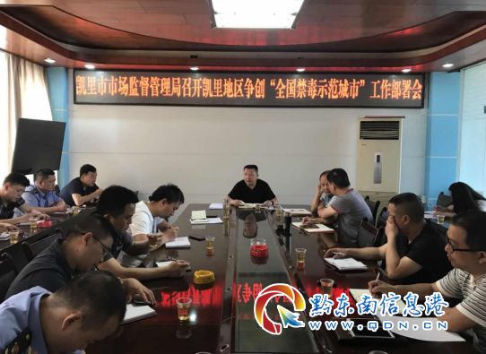 本網訊 2018年5月21日,凱里市市場監督管理局召開凱里地區爭創“全國禁毒示范城市”工作部署會,各科室負責人、分局局長參加會議。
