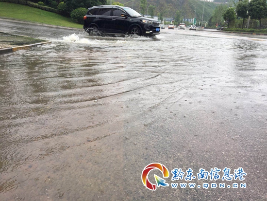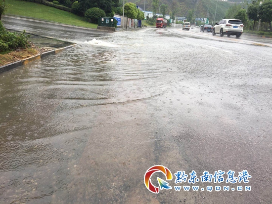 持續(xù)降雨 凱里濱江大道下水道“反水”(圖)