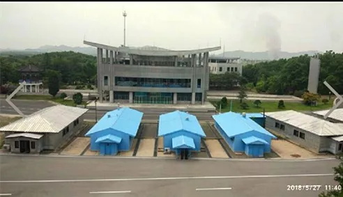我們此行經(jīng)過開城工業(yè)區(qū),但車輛不停,我們只能遠觀。到了停戰(zhàn)談判地點后,有軍人上車陪同,講解也由軍人負責。