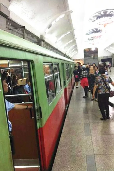 到了平壤,我們去參觀100多米深的平壤地鐵,很壯觀。當天的晚餐比較熱鬧,和我同路的游客唱唱跳跳,氣氛很熱烈。