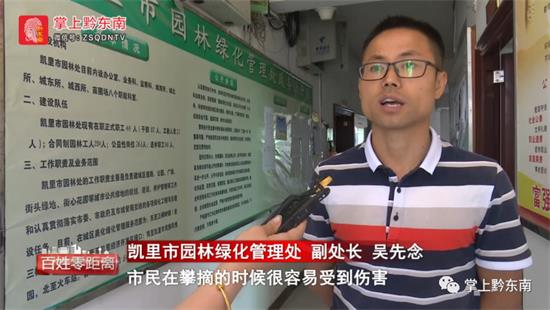 記者來(lái)到了凱里市園林綠化管理處,副處長(zhǎng)吳先念告訴記者,綠化帶上的果樹(shù)不宜采摘,因?yàn)樗麄儠?huì)定期施放農(nóng)藥維護(hù)保養(yǎng),市民吃了可能會(huì)有不良反應(yīng)。而且,生長(zhǎng)在路邊,每天車(chē)來(lái)車(chē)往,排放的尾氣很多,果子也會(huì)受到一定的污染,建議市民不要采摘食用。