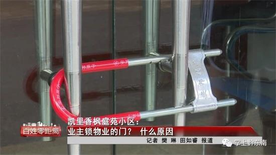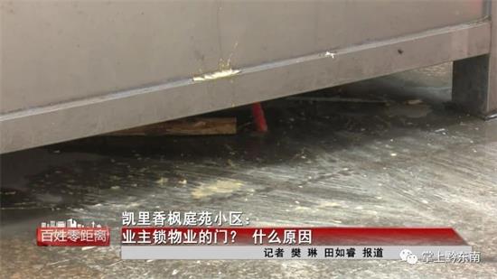 香楓庭苑業委會副主任:“她就說她不交水費,因為我們的規定里面有一項規定,三個月不交水費物業可以給她作停水處理,昨天晚上就發生了把物業門鎖了,拿大糞潑崗亭。”