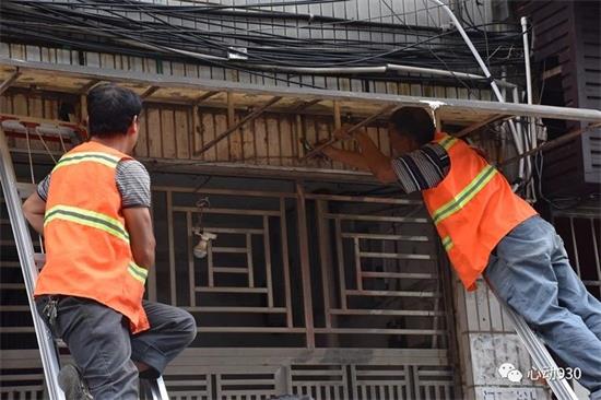 7月3號當天7:30分,在全部集合完畢后,由城西街道辦事處牽頭,聯合凱里城市管理行政執法局、凱里市公安局等相關部門組成的聯合執法隊,聯合對該區域內違規搭建的鋼架棚、雨棚依法進行了拆除。另外,對于該宿舍樓房前屋后的衛生情況也進行了整治,拆除了周邊超出門面的廣告牌。