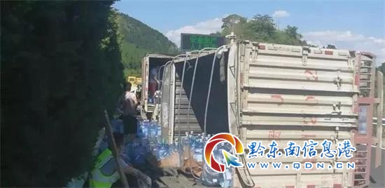 7月11日中午1點30分左右,黔東南州交警支隊高速一大隊值班室接到報警電話稱,在滬昆高速貴陽往凱里方向1698km+800m處,一輛滿載貨物的廂式貨車發(fā)生側翻,占據(jù)超車道。