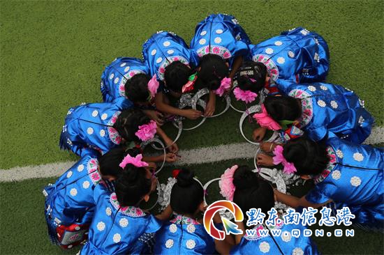 兩天前,在迎接儀式上,兩地學(xué)生結(jié)為對子,一起換上苗族服裝,聽康城實驗學(xué)校的教師上課,觀看同學(xué)們的苗族舞蹈表演,而且手拉著手圍成一圈,情不自禁,跟著當(dāng)?shù)靥J笙師,學(xué)跳蘆笙舞,不亦樂乎。