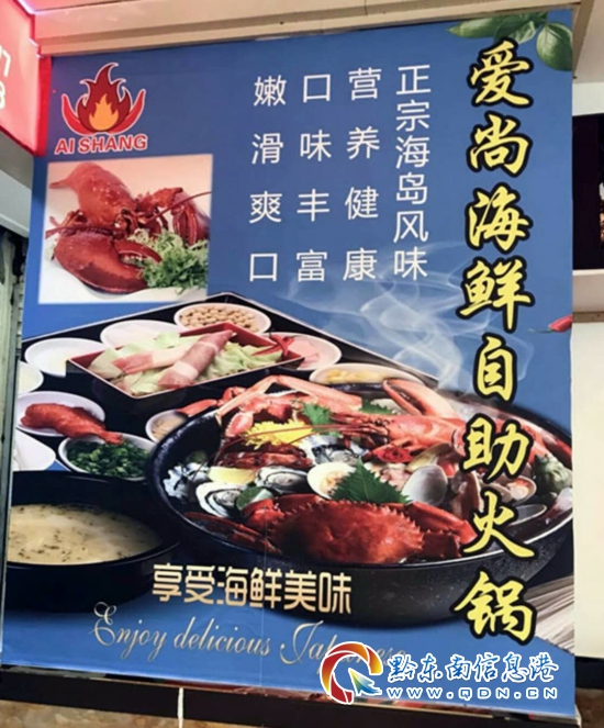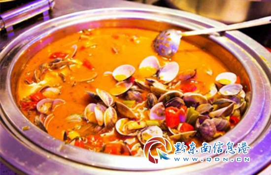 本網訊 在凱里小十字往營盤坡的路口處,也就是小十字電腦城的樓上,有一家愛尚海鮮自助火鍋(前來消費的還要贈送燒烤哦)城,也許你覺得,它就是一般的餐廳,你說的沒錯,但是,它也有特殊之處,在這里,可以吃到東部地區的海鮮,也可以品嘗到西部凱里小城的酸湯牛肉,算是中西部飲食相結合的典范了!