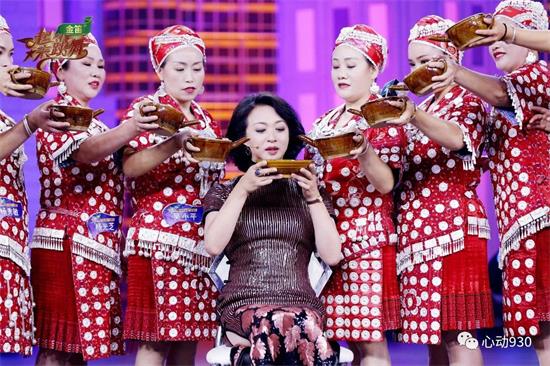 牛角杯,板凳舞,敬酒歌,在舞臺上,灣水苗家廣場舞隊的每一支舞蹈和音樂都在表達她們引以為傲的苗族文化,形成了獨具特色、并帶有民族文化底蘊的舞風。舞隊不僅將為觀眾帶來精彩的舞蹈表演,更誠邀金星、沈南現場體驗苗族款待賓客的敬酒方式——“高山流水”,親身感受苗族人的熱情淳樸。