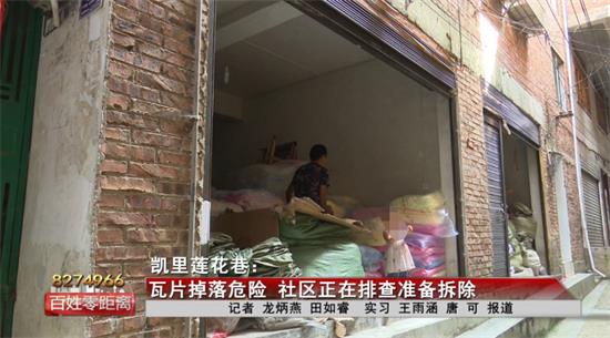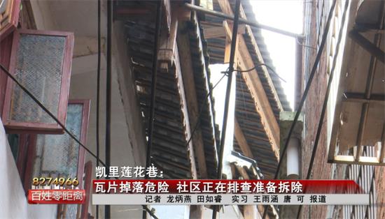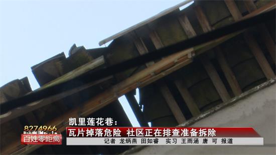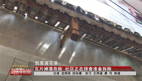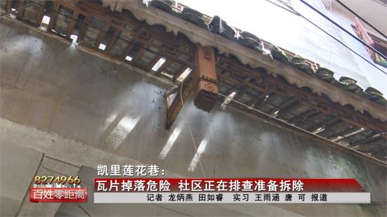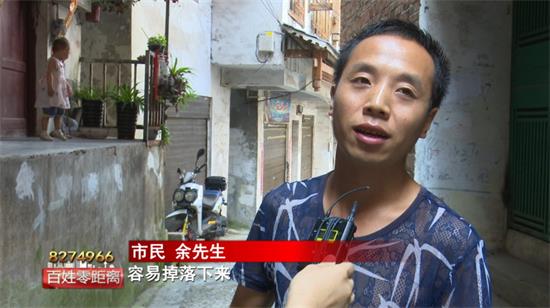 來到蓮花巷,記者看到,在余先生所說的地方,確實有瓦片懸在邊緣上,搖搖欲墜。余先生說,自己在蓮花巷,租了一處空房做倉庫,每天都要帶著孩子到倉庫來取貨,有一次瓦片掉了下來,把自己和孩子都嚇了一大跳。