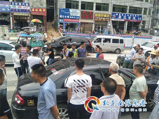 在附近執勤的一名交警聞訊來到事發現場,要求雙方冷靜處置。之后他要求黑色轎車的駕駛員出示駕駛證。開始,該駕駛員用其他話語來搪塞,后來交警一再逼問,他拿不出來,說“不是我開車”。現場群眾吼起來:“就是他開的車!”、“搞半天,是無證駕駛。”……