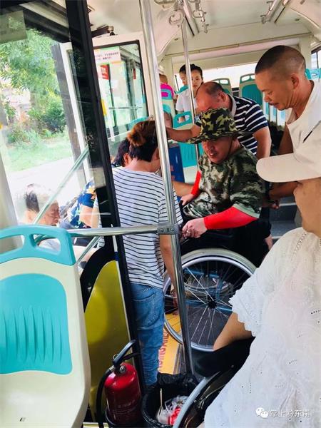 得知這個情況后,何德猛考慮到公交前車門較窄不方便將輪椅車抬上來,便立即把車往前移動,并號召其他乘客、路人一起從后門將三位坐輪椅的乘客抬上了車。當公交車到達下司終點站時,駕駛員何德猛又號召車上的乘客紛紛把這三位坐輪椅的乘客抬下車。