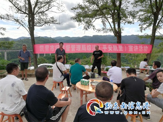 2018年9月2日中午,凱里市市場監督管理局辦公室和駐村工作組到凱里爐山甘壩村一個剛剛成立的企業開展禁毒宣傳,聯系幫扶綜治及《平安凱里》創建工作。