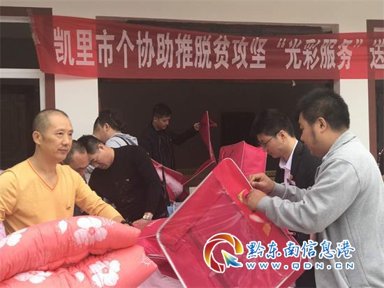 本次捐贈活動的經費,主要由凱里市個私協黨支部的黨員籌集,戶均所領物資價值約250元。凱里市政協副主席舒宋昌出席捐贈儀式,凱里市市場監督管理局、凱里市個協黨總支、爐山鎮黨委、政府等部門參加儀式。