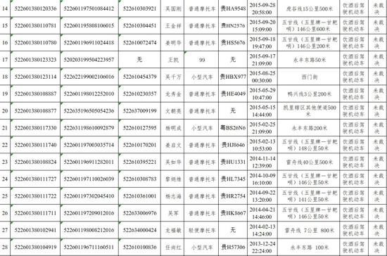 我局在日常道路交通管理工作中(2012年1月1日至2018年10月10日)對涉案扣留的各類駕駛證共53本,均已超過法定期限未按規定接受交通違法處理。根據《中華人民共和國道路交通安全法》第一百一十條規定:“執行職務的交通警察認為應當對道路交通違法行為人給予暫扣或者吊銷機動車駕駛證處罰的,可以先予扣留機動車駕駛證,并在二十四小時內將案件移交公安機關交通管理部門處理。道路交通違法行為人應當在十五日內到公安機關交通管理部門接受處理。無正當理由逾期未接受處理的,吊銷機動車駕駛證。”規定,請相關駕駛員自通告之日起十五日內,攜帶本人身份證及車輛有效憑證到凱里市公安交通管理局辦理相關手續,逾期不來辦理的,依法吊銷機動車駕駛證處理。