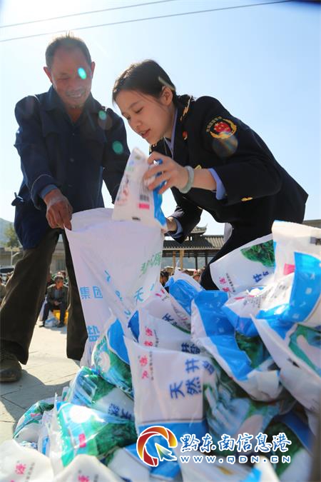 圖為:工作人員在甘壩村,向群眾免費發放食鹽。 (楊仁海 攝)