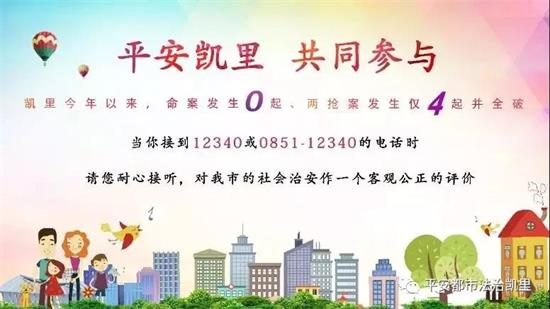 “您的支持配合,您的一聲‘安全’、‘平安’、您的一句‘滿意’、‘好‘,是給我們注入的強(qiáng)大工作動力。讓我們攜起手來,共同努力奮進(jìn),共同創(chuàng)建平安幸福和諧新凱里!”