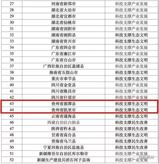 據悉,此次創新型縣(市)建設主題包括科技支撐產業發展、科技支撐生態文明、科技支撐民生改善3個類別。凱里市和湄潭縣建設主題為科技支撐生態文明。公示時間為2018年11月22日至11月28日。