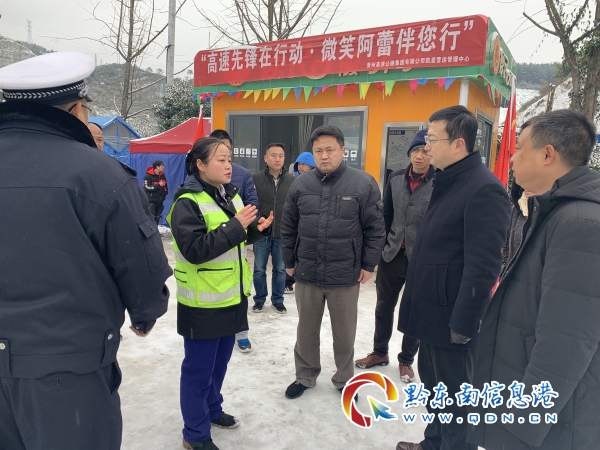 隨后,羅強州長一行徒步查看了現場滯留車輛,對凱里東站滯留的80余輛車和200余人進行安撫。看著持續奮戰的高速先鋒們凍得通紅的面孔、熬紅的雙眼,羅強州長對凱里中心員工的無私奉獻精神給予高度贊揚,并希望貴州高速凱里營運管理中心集聚能量,攻堅克難,當先鋒、做表率,堅決打贏這場抗凝保通攻堅戰。中心員工紛紛表示將主動迎戰新一輪冷空氣,牢記囑托,感恩奮進,團結一致,發揚連續作戰精神,全力以赴保暢通,讓廣大群眾放心出行,安全回家。